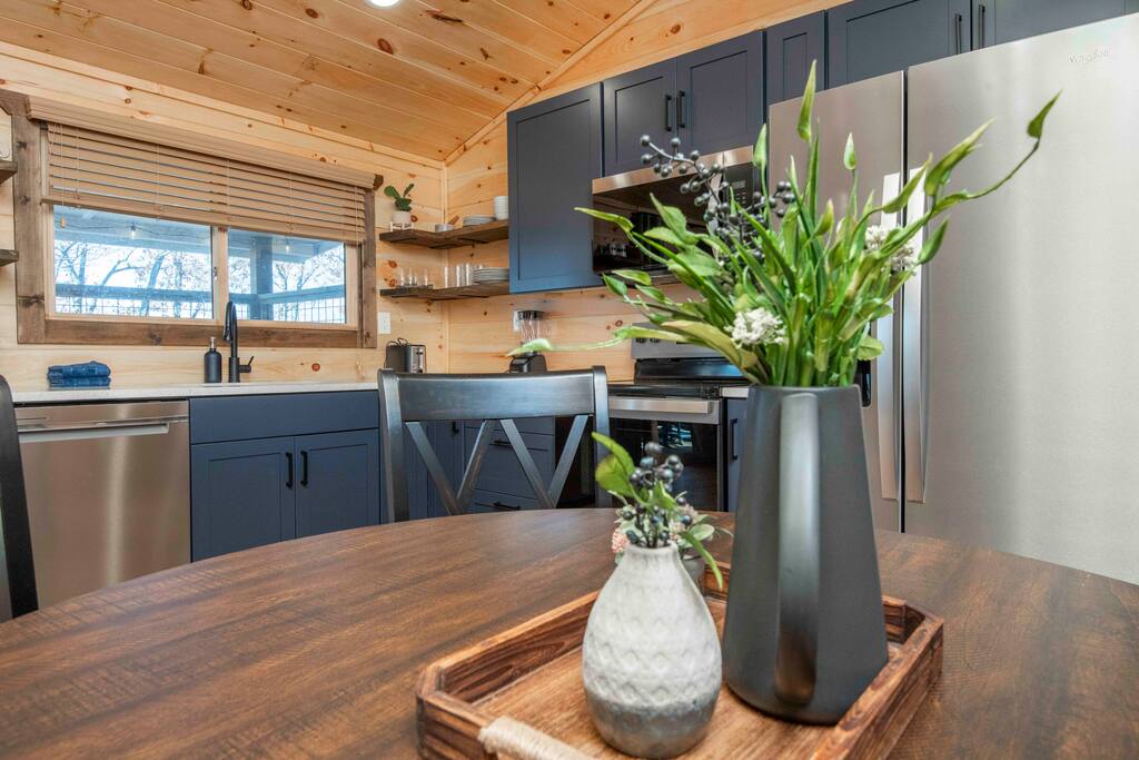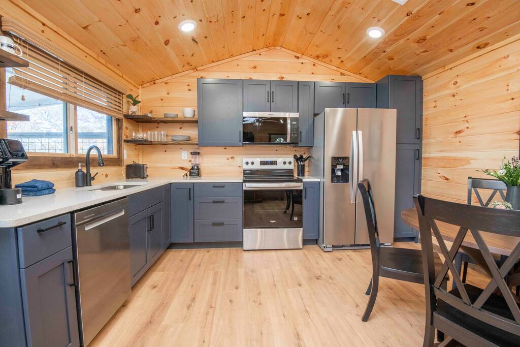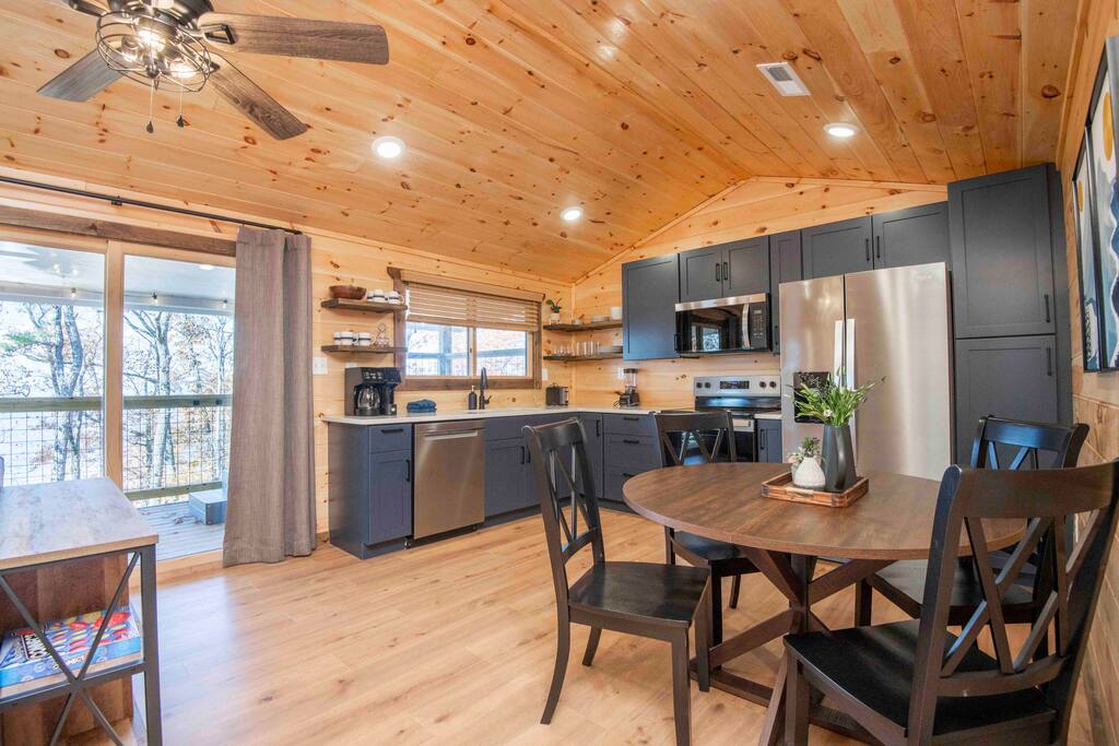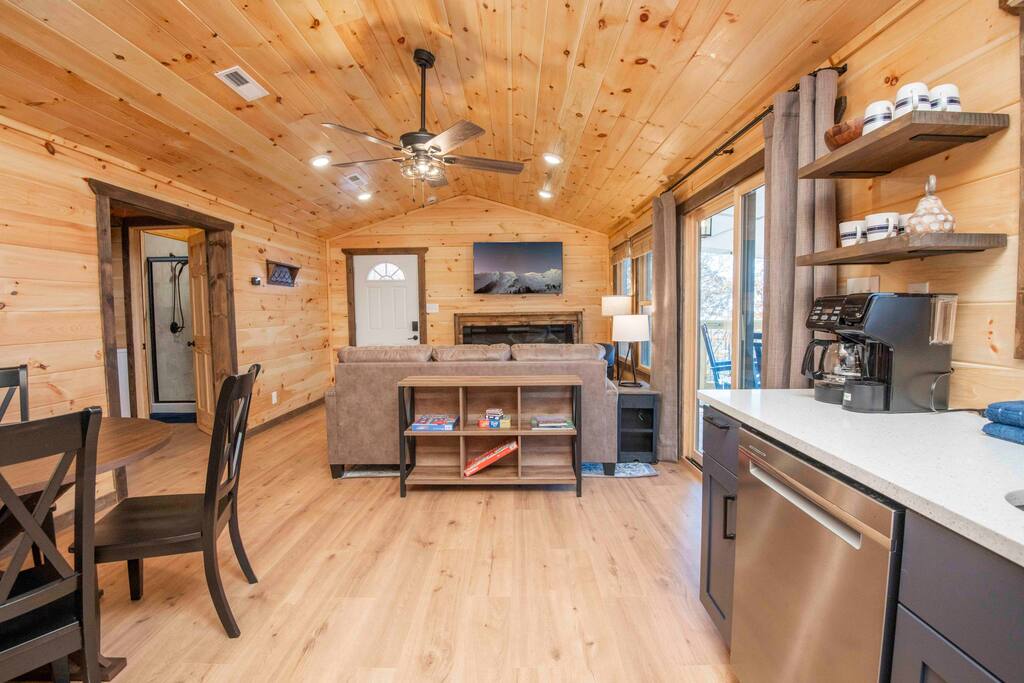 ★ 1 King Bed ★ Hot Tub ★ Completely renovated top-to-bottom ★ 600 sq ft 1 Bedroom Tiny Cabin ★ 55" TVs ★ Starlink WiFi ★ Washer/Dryer Stacked ★ Peaceful ★ Electric Fireplace
